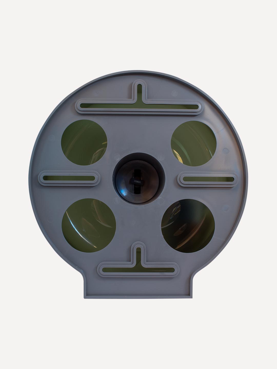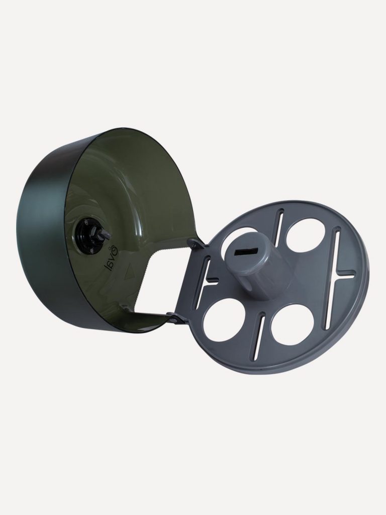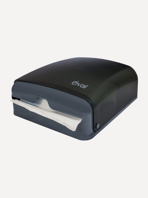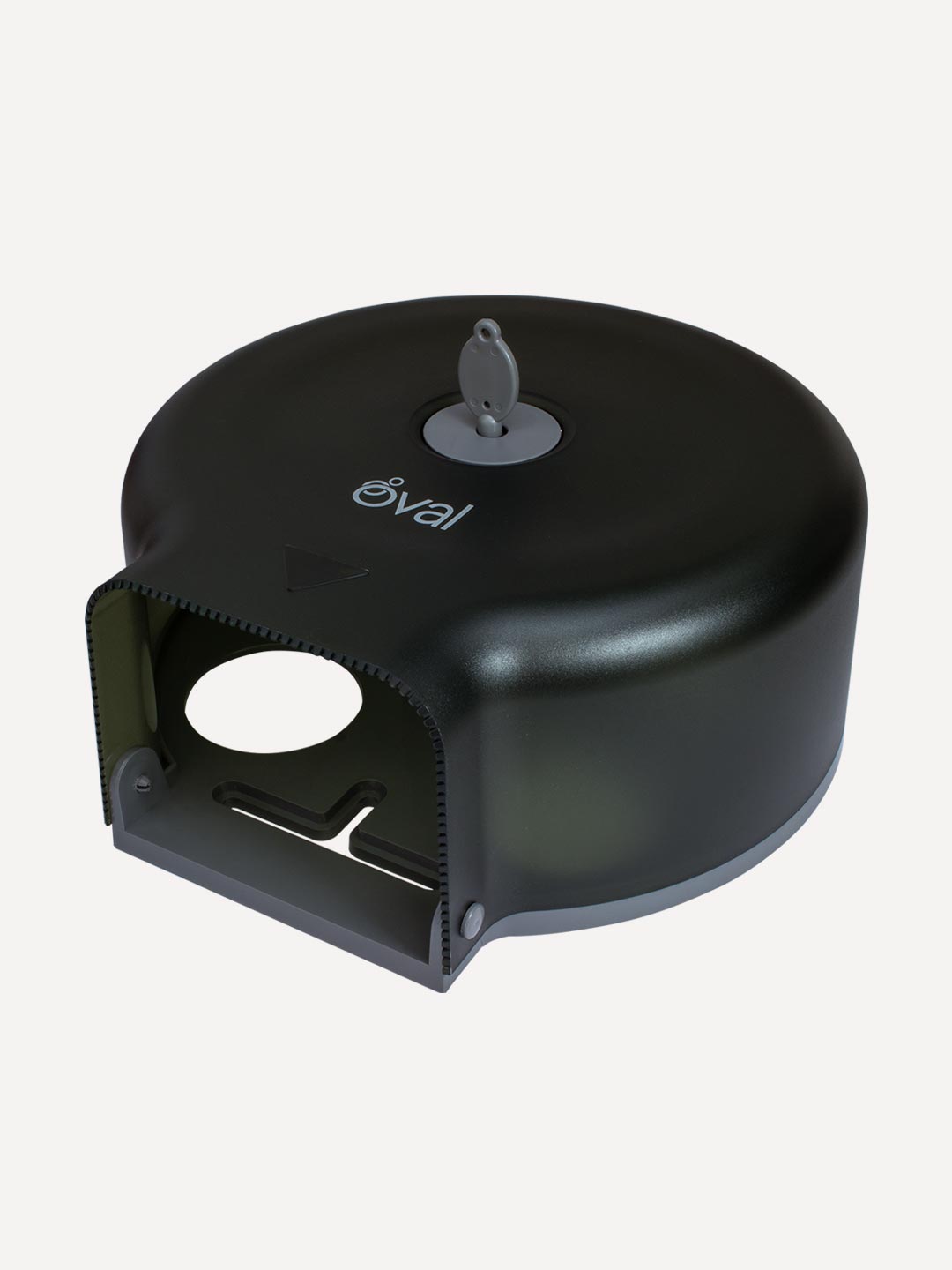 Es un dosificador de papel higiénico en bobina junior. Tiene capacidad para rollos de hasta 10 cm de ancho y de hasta 300 mts de largo. Es un despachador de excelente resistencia al impacto por lo que es de uso rudo / industrial. La superficie de la cubierta tiene un terminado rugoso para evitar rayaduras y marcas excepto al centro donde el terminado es liso para permitir ver mejor el rollo. Este despachador dosifica cualquier marca de papel higiénico junior universal, ya sea de hoja doble o sencilla. La cerradura está al centro del despachador por lo que es muy segura y utiliza llave para abrirse. Este despachador viene con dos llaves.