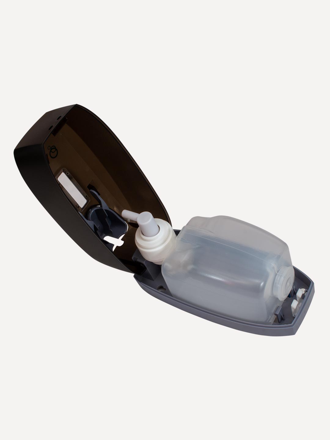 Es un dosificador de jabón para manos en espuma. Esta jabonera puede dosificar cualquier marca de jabón diseñado para espuma a granel. Su mecanismo permite mezclar el jabón con el aire y hacer una espuma densa para un conveniente lavado de manos. Cada dosis equivale a 0.7 ml de jabón. Es un dosificador completamente manual por lo que no requiere baterías. El tanque de la jabonera tiene capacidad de 750 ml. La tapa o cubierta cubre tanto el tanque como el mecanismo y cuenta con cerradura. La jabonera viene con 2 llaves.