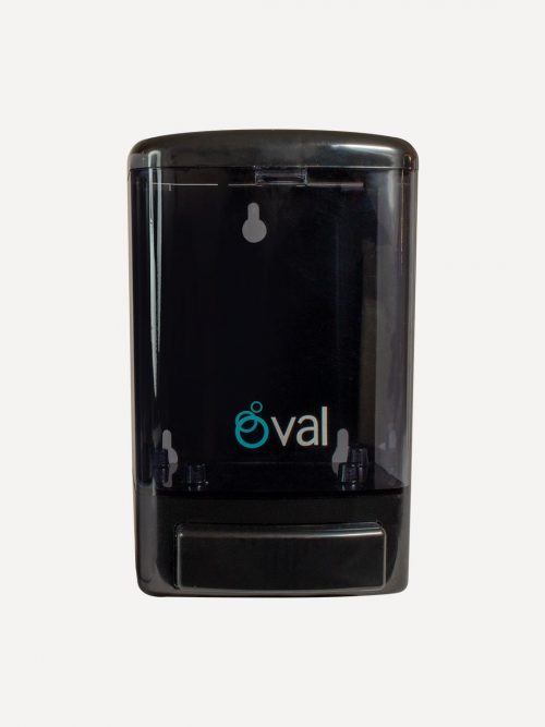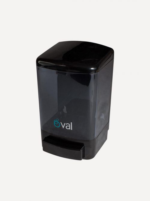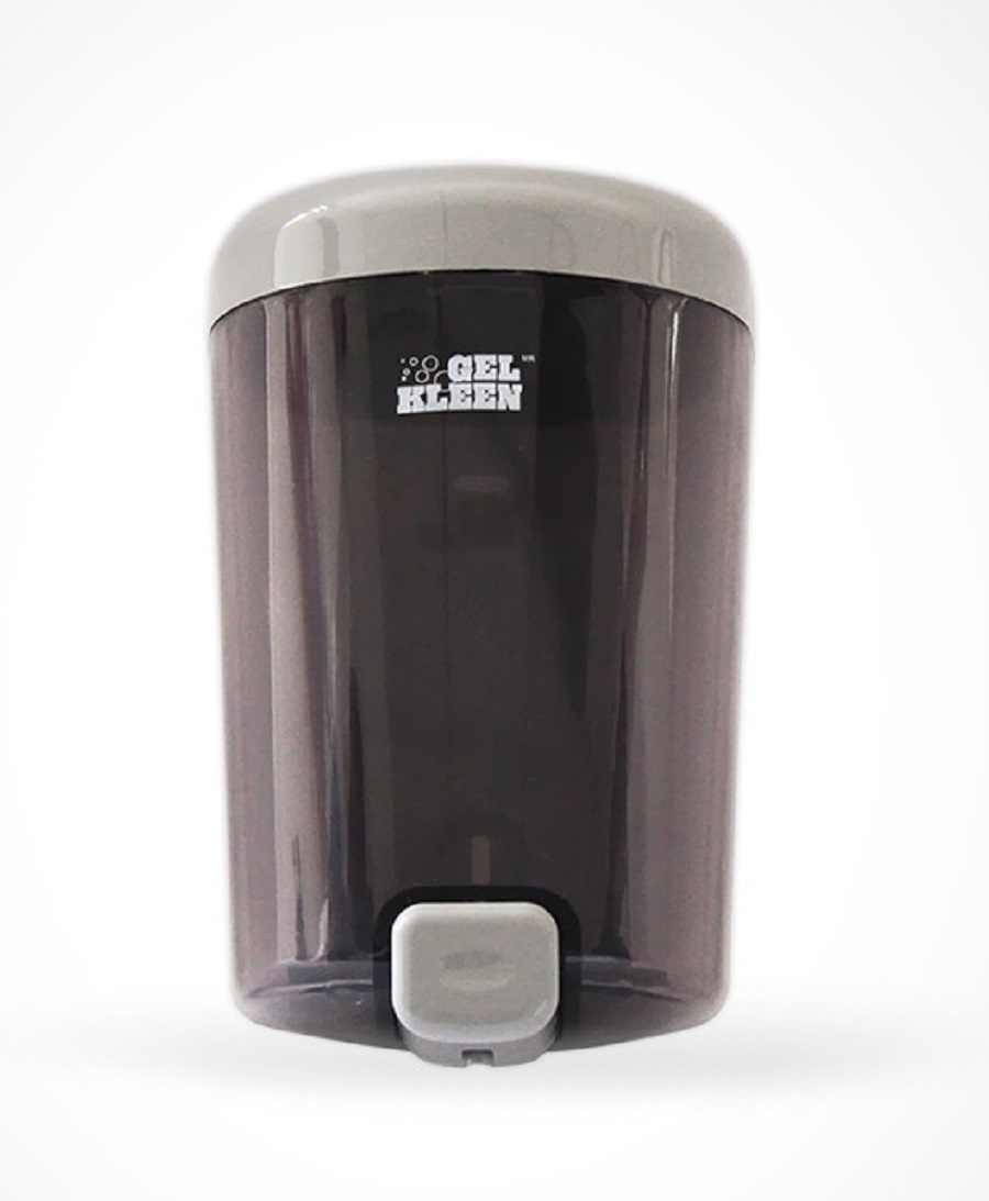 Jabonera moderna, funcional, plástico resistente. Opera de forma manual y dispensa jabón al presionar el botón frontal.