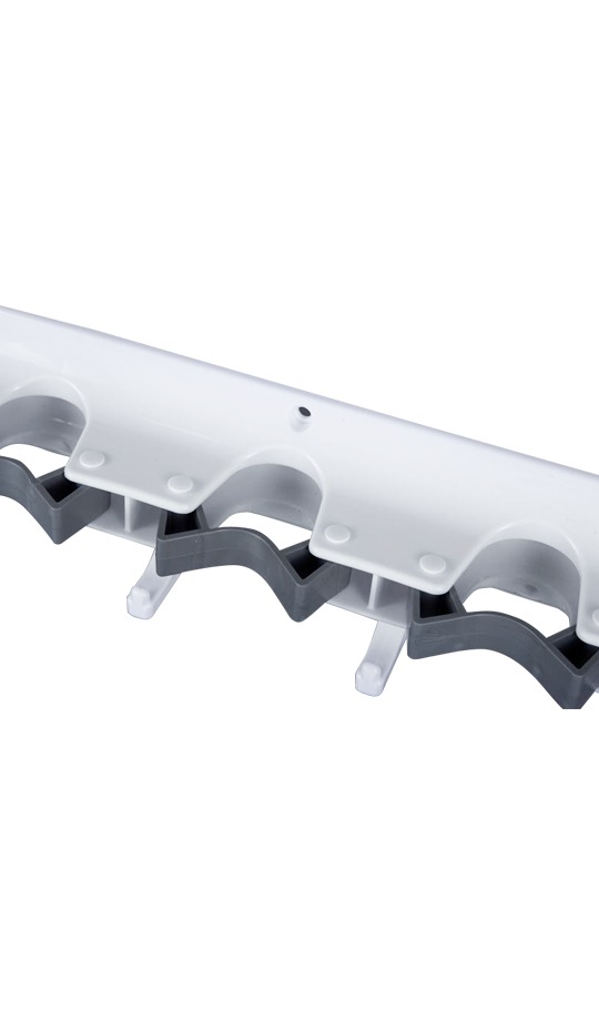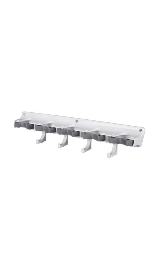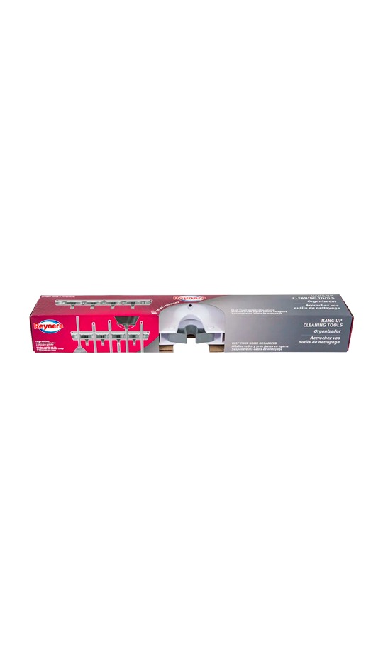 El organizador de escobas Reynera, tiene el diseño perfecto para colocar escobas, trapeadores, etc. Su instalación es fácil, cuenta con 5 espacios para colgar y 4 ganchos.