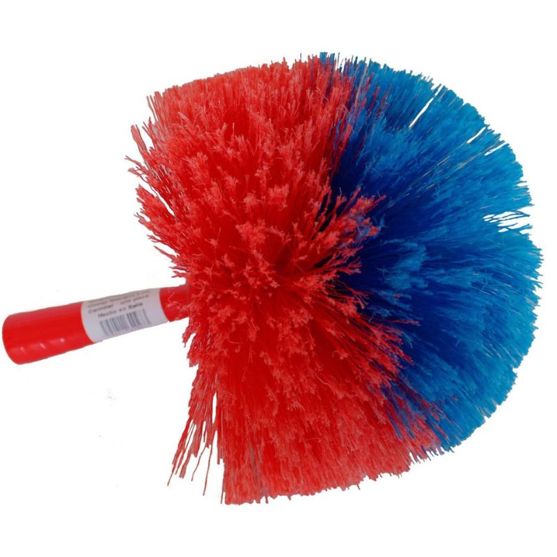 Sacudidor con cabeza redonda de cerdas suaves y mango metálico reforzado extendible hasta 3 metros.